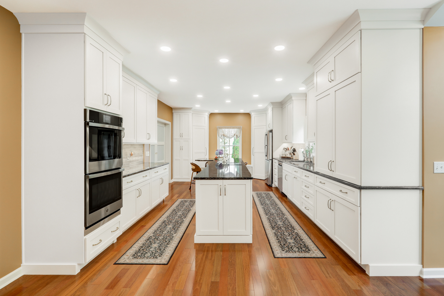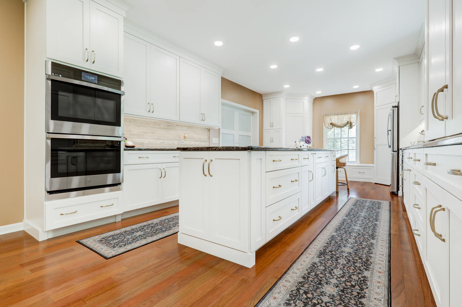 This stunning kitchen remodel in Hummelstown, PA, just minutes from Hershey, PA, blends timeless craftsmanship with thoughtful modern upgrades. Designed with both everyday living and entertaining in mind, this kitchen showcases a clean, classic aesthetic anchored by bright white cabinetry, warm hardwood floors, and a striking kitchen island that serves as the centerpiece of the space.