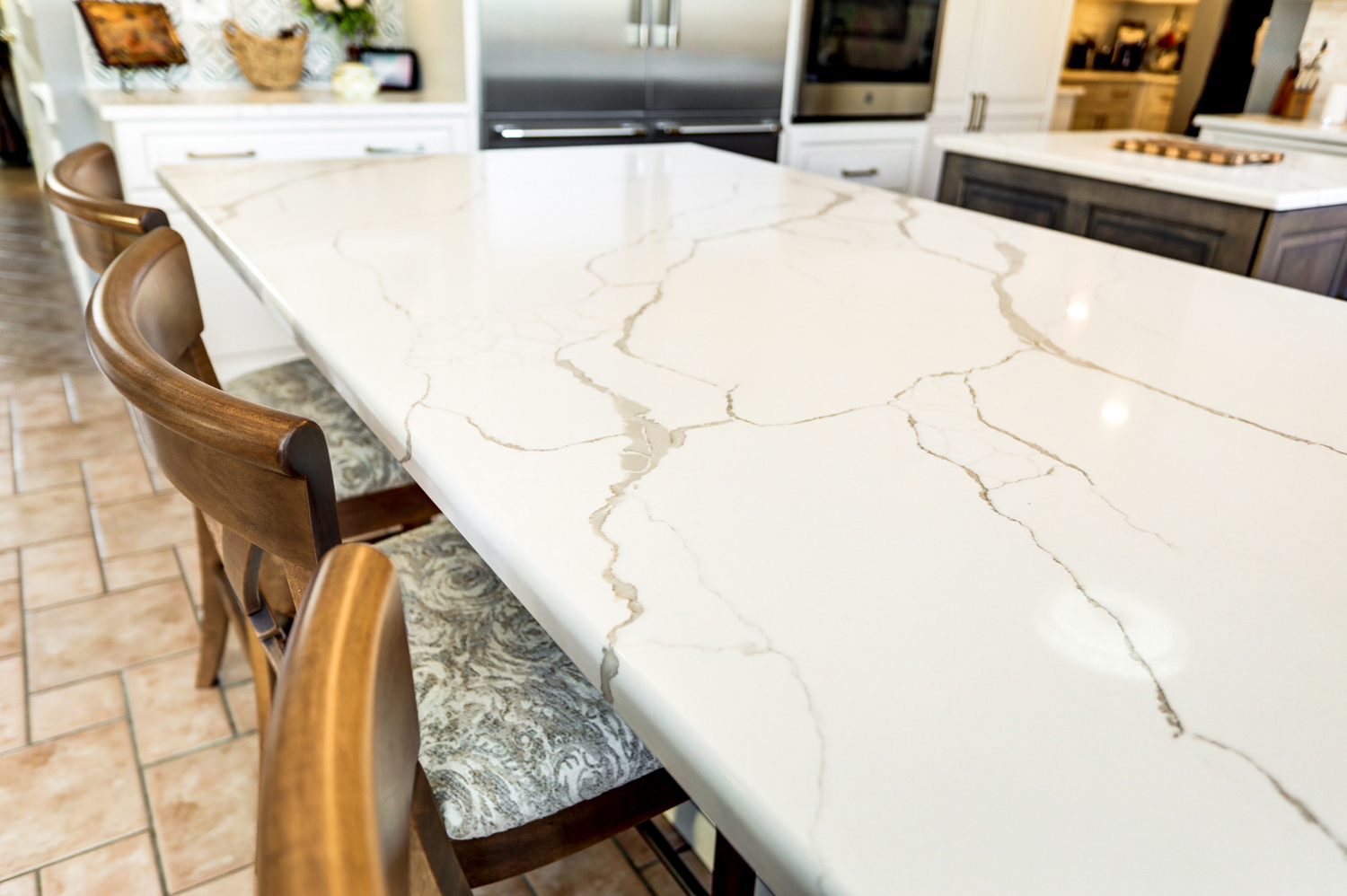 • Quartz countertops with expansive island and seating