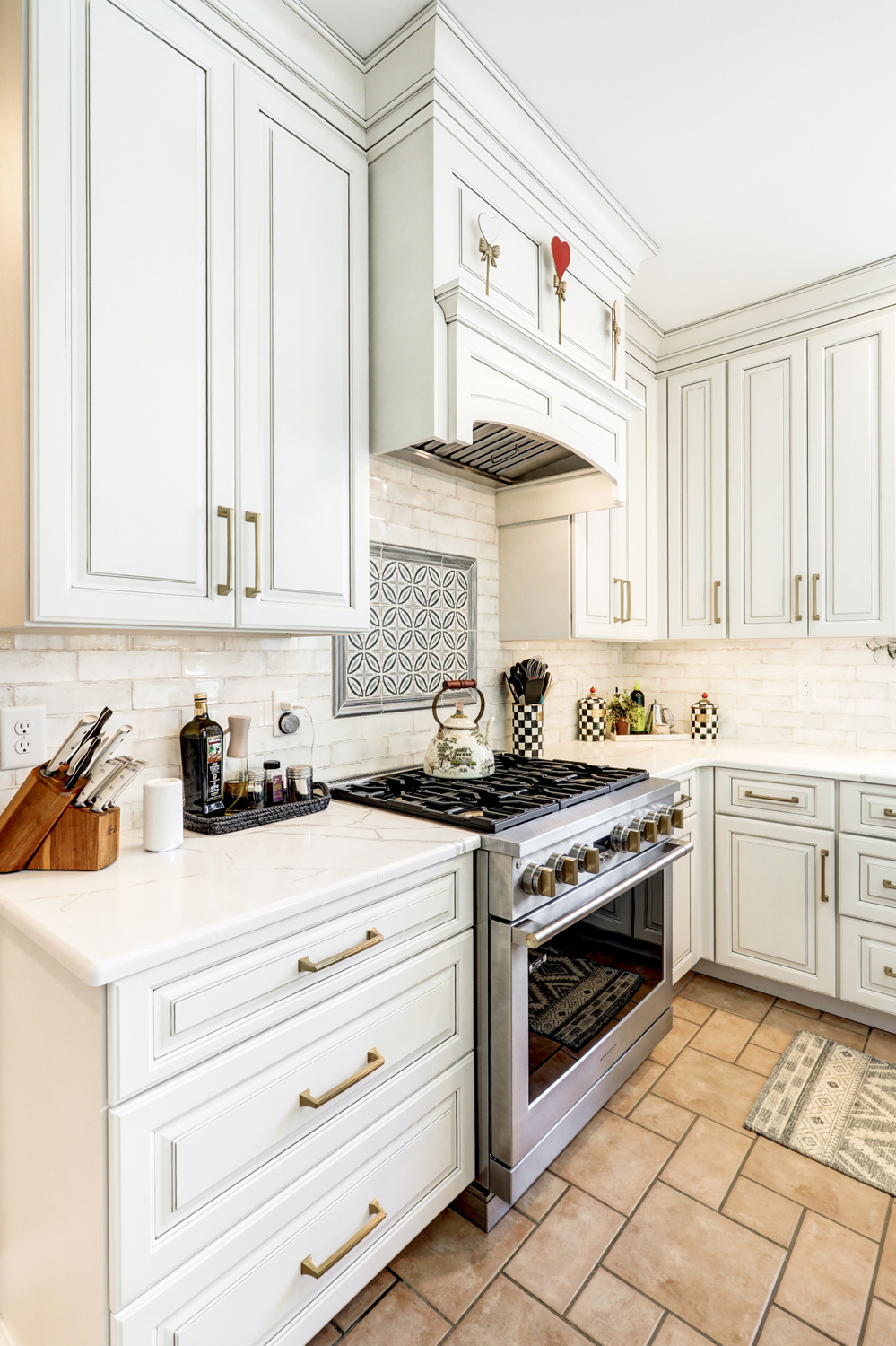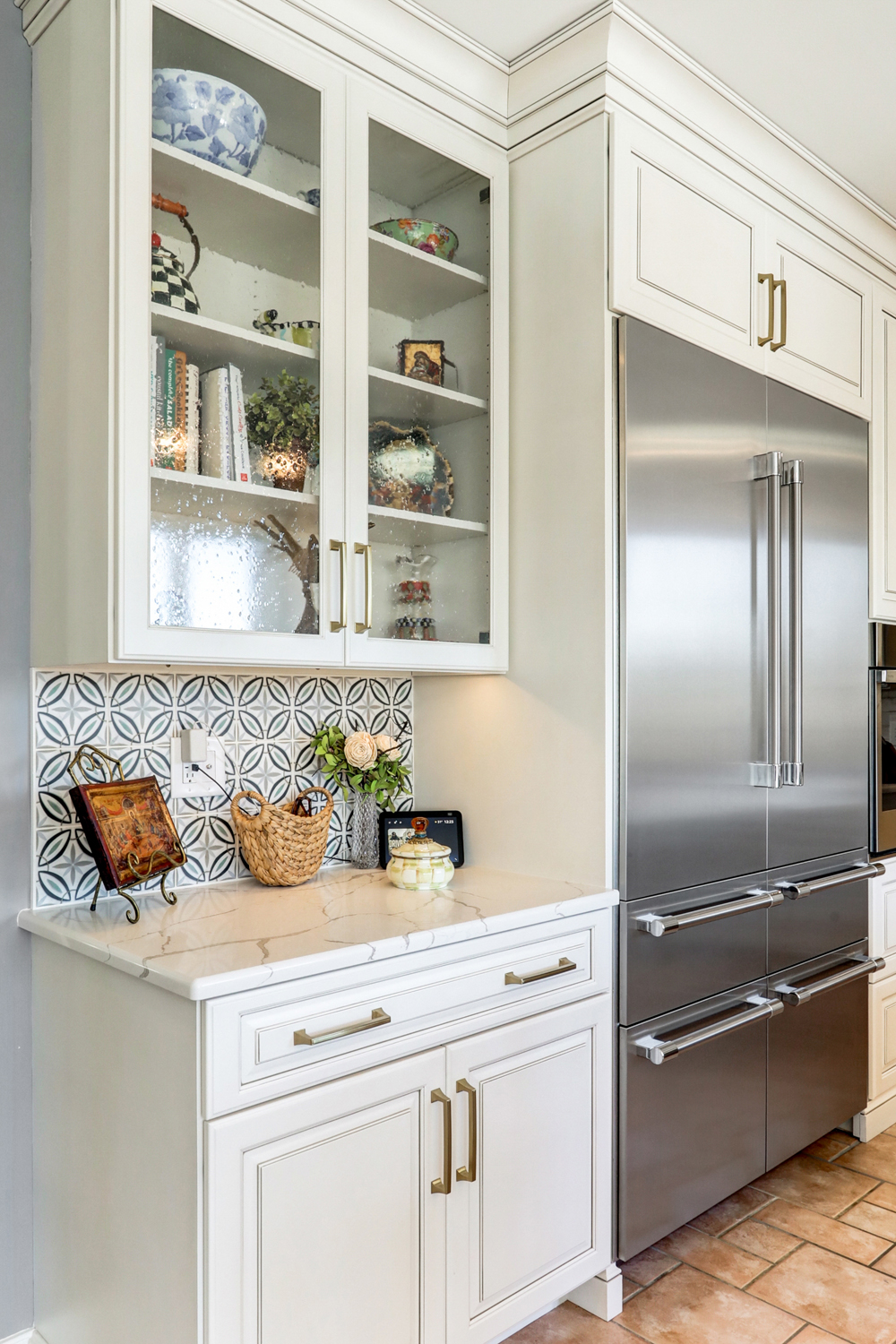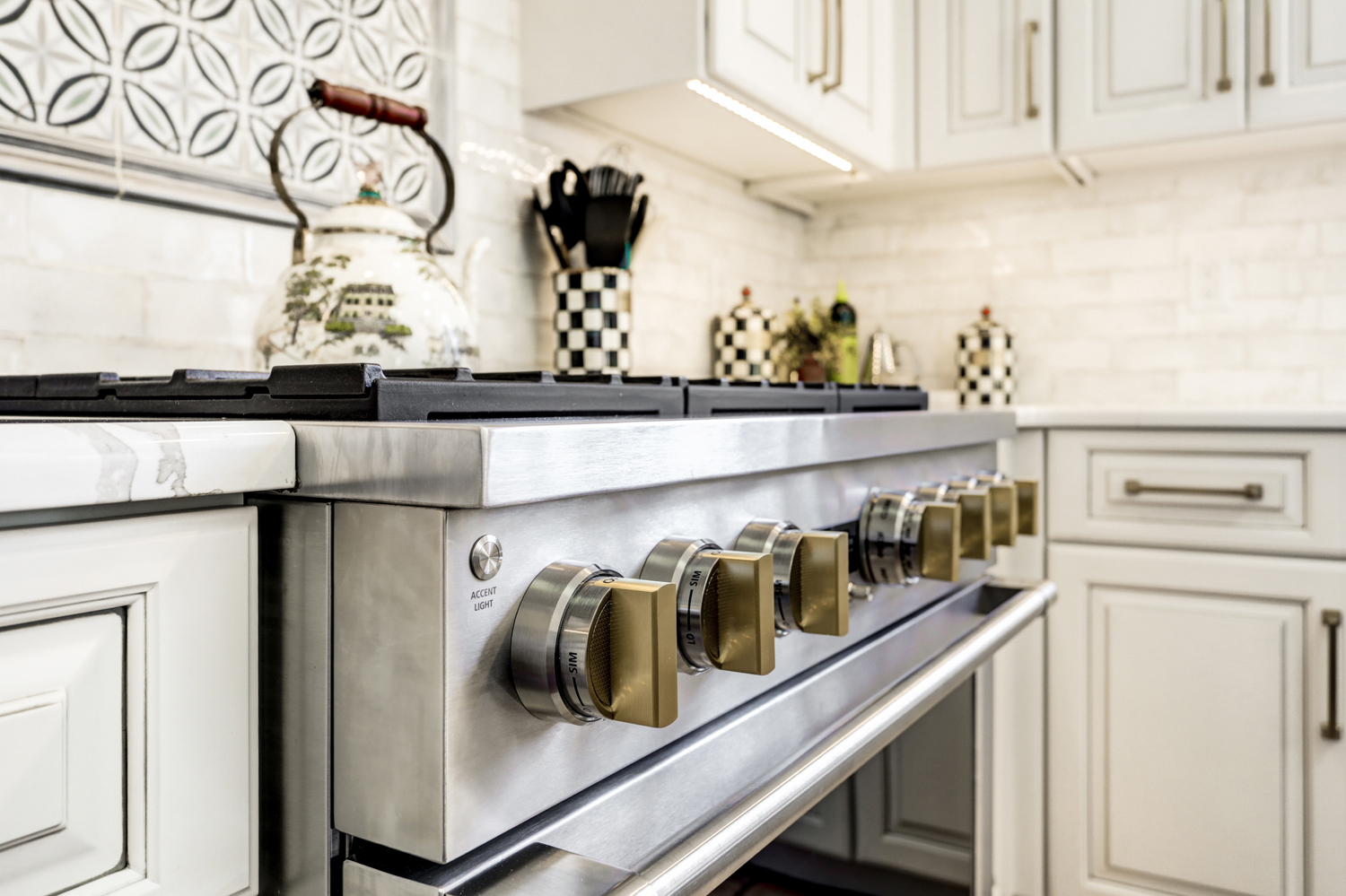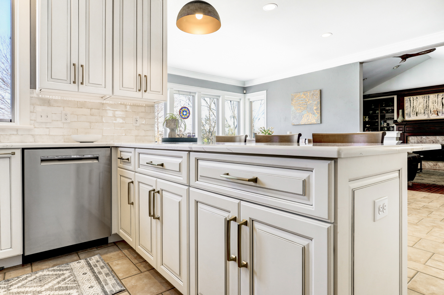 • Tile backsplash with timeless, neutral tones